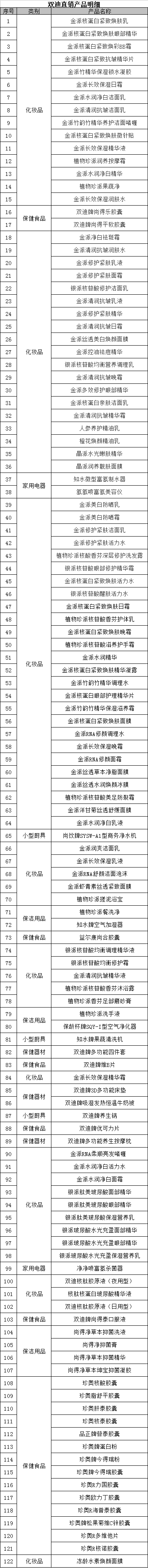 雙迪直銷產(chǎn)品明細(xì)